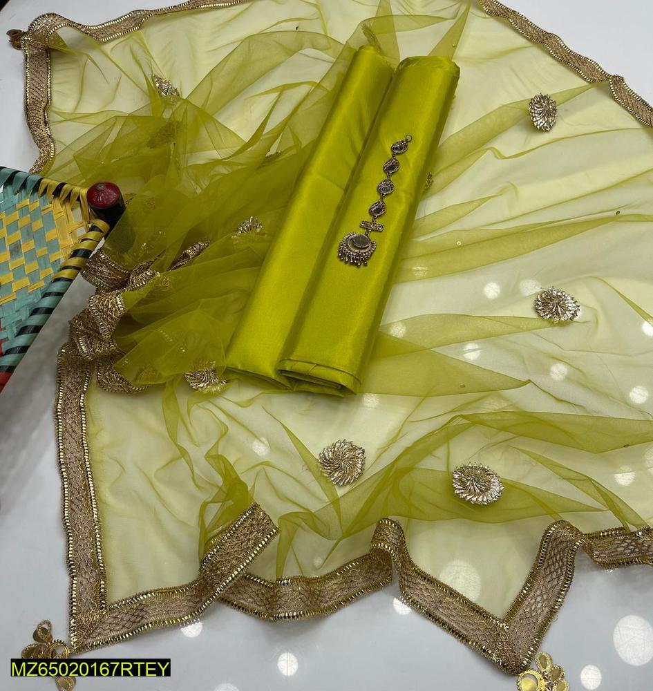 3 Pcs Women’s Unstitched Katan Silk Plain Suit